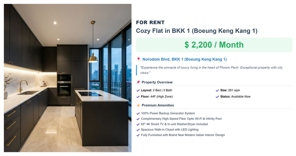 Boeung Keng Kang 1, commonly known as BKK 1, represents the absolute pinnacle of the Phnom Penh real estate market. As the city's primary embassy and diplomatic quarter, it offers unparalleled security and premium infrastructure, making it the most defensive 'Core' asset for institutional investors. With the highest land price density in Cambodia, BKK 1 guarantees stable rental demand from high-net-worth expat executives and multinational corporations, ensuring blue-chip liquidity and long-term capital preservation in any market cycle.