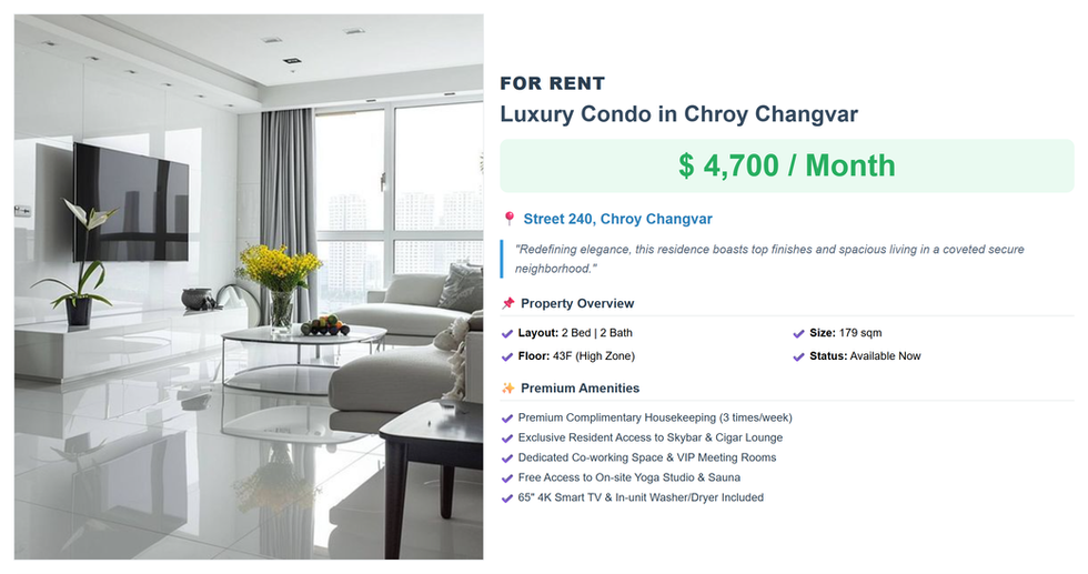 Chroy Changvar is the "Emerging Satellite City" and the primary frontier for massive capital appreciation in Phnom Penh. Surrounded by the Mekong and Tonle Sap rivers, its riverside scarcity and new bridge-led connectivity have triggered a wave of landmark satellite projects and master-planned communities. Investors focused on long-term land-flipping strategies and high-end riverside residences view Chroy Changvar as the leader in infrastructure-led capital gains for the next decade.