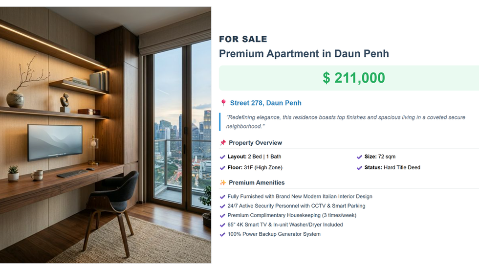 Daun Penh serves as the heritage and tourism waterfront of the city, encompassing historical landmarks and the iconic riverside promenade. This district commands immense foot traffic, making it the premier zone for high-end retail, boutique hospitality, and landmark commercial plays. Investments in Daun Penh leverage the district's historical significance and evergreen tourist appeal, ensuring that commercial asset values remain resilient and tied to the city's cultural identity.