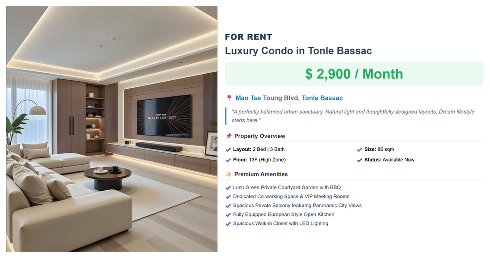 Tonle Bassac is a high-growth luxury corridor that has become synonymous with premium urban living. Driven by its proximity to the AEON 1 Mall and the sprawling Diamond Island (Koh Pich) development, it has seen an aggressive surge in high-spec condominium projects and Grade-A commercial towers. For investors, Tonle Bassac offers a unique blend of lifestyle-driven capital appreciation and strong rental yields, supported by the concentration of international retail hubs and high-end hospitality venues.